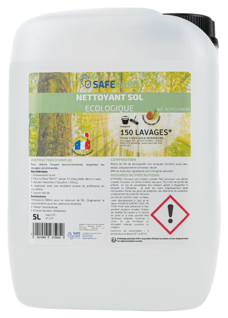 Le nettoyant sol est compatible tous types de sols, s’utilise manuellement ou en autolaveuse.